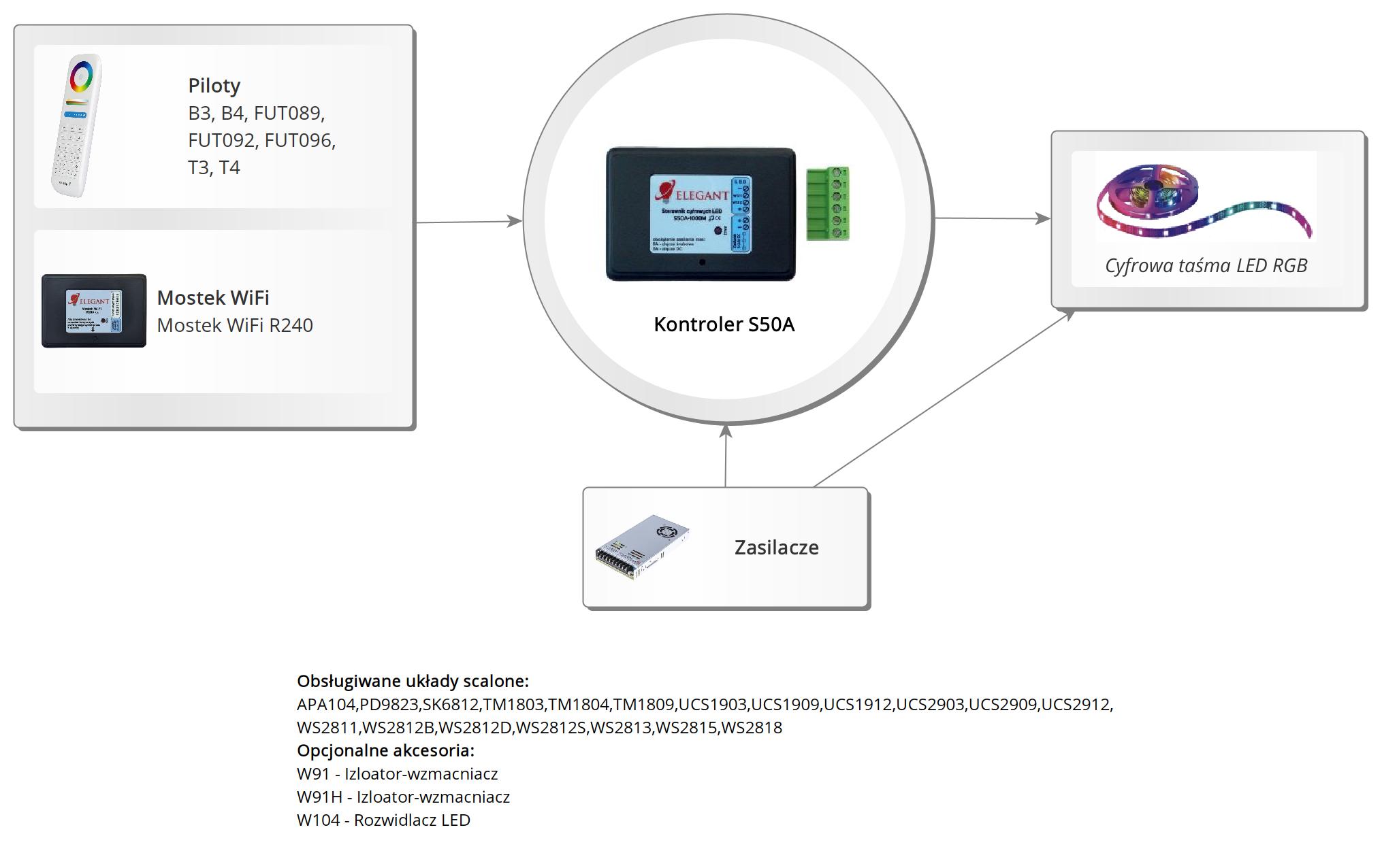 | Kompatybilne taśmy | Cyfrowa taśma LED RGB |